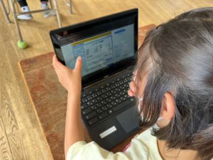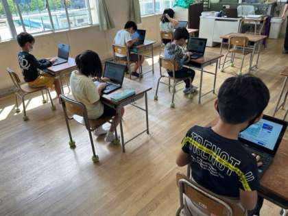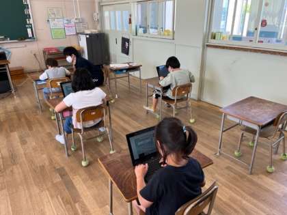 3年生は学習者用端末を使って「タイピング」をしていました。ローマ字を早く覚えてしまって、タイピングが上達するように頑張ります。
