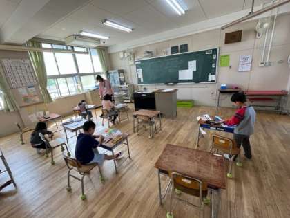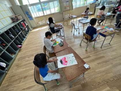 3年生が図工の時間に「不思議なたまご」を描いていました。パスで色をつけて、たまごを作ります。何がうまれるのかな?