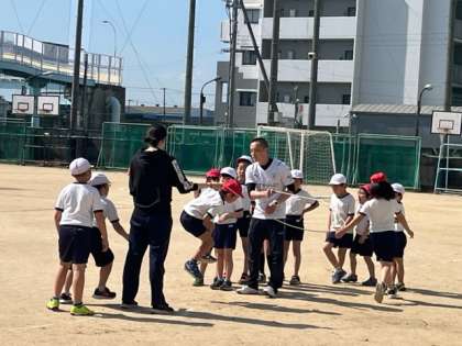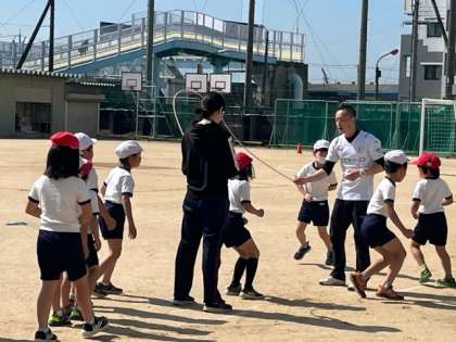 3年生が「八の字回旋とび」をしていました。タイミングよく素早く動かないと止まります。自分だけでなく、友だちの動きにも配慮が必要です。