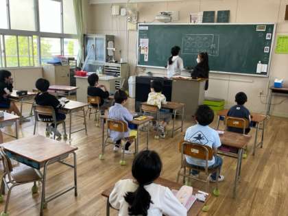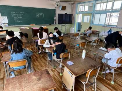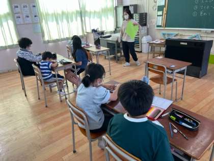 学年組、自分の名前を書いて色を塗ったりイラストを足したりします。ていねいに仕上げていますね。