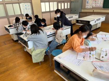 5年生が家庭科の時間に「調理実習の計画」を立てていました。野菜を切ったり茹でたりする実習です。実習が楽しみですね。