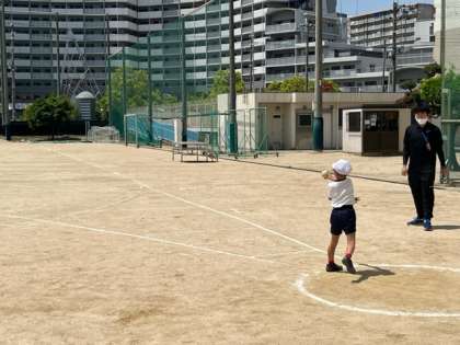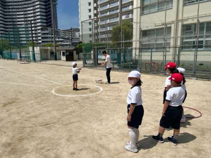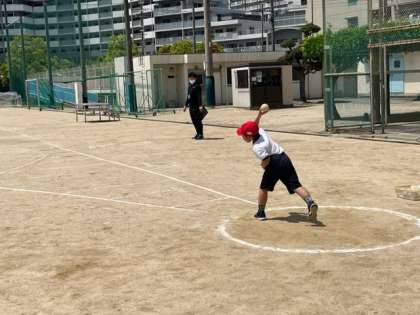 時間ごとに異なる学年の子が投げます。高く遠くまで投げてね。