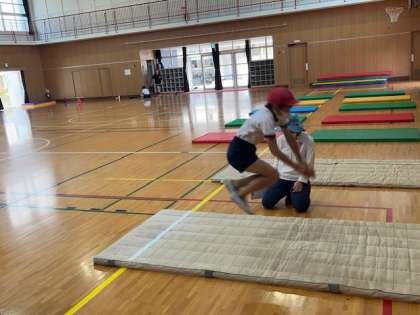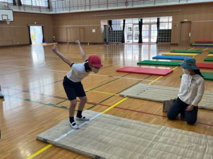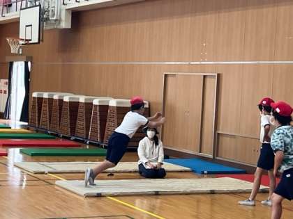 立ち幅跳びの計測もしています。しっかり腕を振って跳びます。