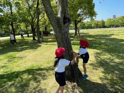木に登るのも難しく、大阪城を見に行くか、走り回るか。いろんな遊びをしています。