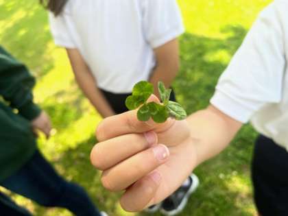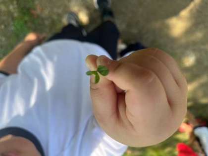 次は四つ葉のクローバーを探します。え?もう見つけたの?