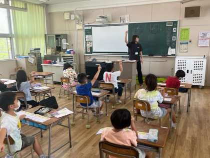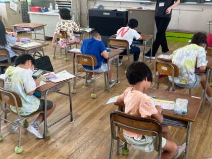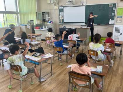 2年生は、新出漢字を学習していました。「こころ」「そと」です。空中黒板に指で書いて覚えましょうね。