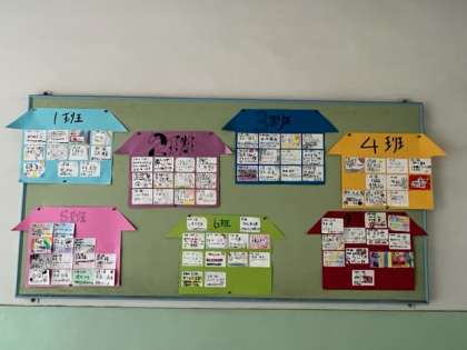 縦割り班のおうちです。みんなの決意や頑張りたいことが書かれています。
