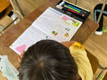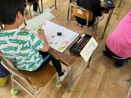 1年生は、ひらがなを全部学びました。今日は習ったひらがなでしりとりをしていました。