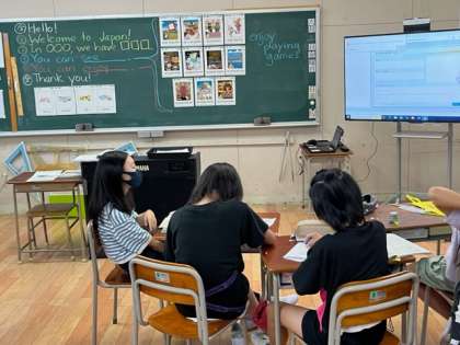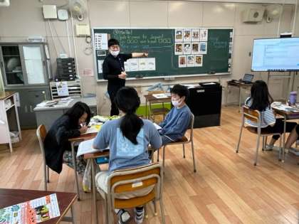 6年生の外国語科の時間では、「Welcome to Japan.」です。日本は楽しいよ。