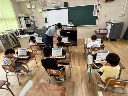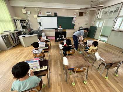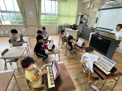 1年生は鍵盤ハーモニカの学習です。「チューリップ」「つきよ」を演奏していました。