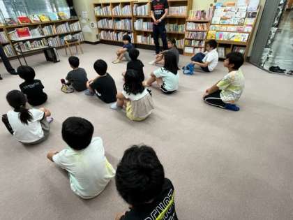 今日は3年生が港図書館に見学です。全員初めて港図書館にきました。