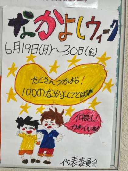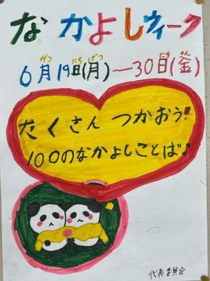 今週は「なかよしウィーク」です。100のなかよし言葉を進んで使いましょう!