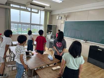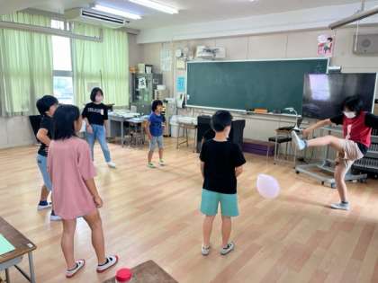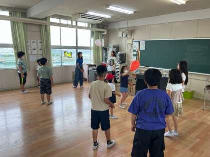 今日は縦割り班の「なかよしタイム」です。教室や運動場に集まって縦割り班で遊びます。