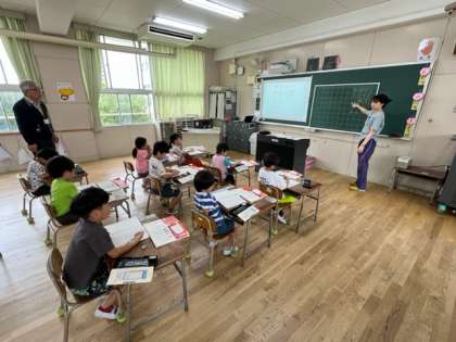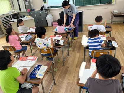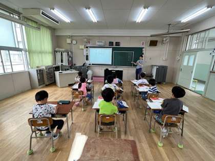 1年生は、「のばすおん」の書き方の学習です。「おかあさん」「おとうさん」書くときに気をつけることを学んでいました。