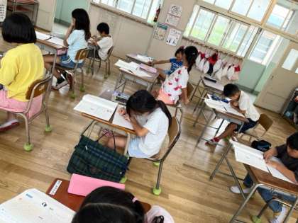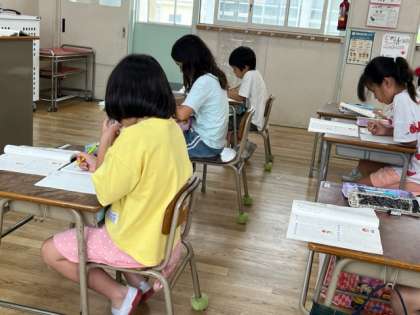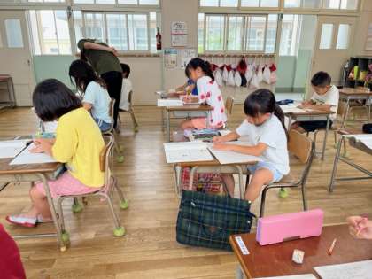 2年生は漢字を使った文を完成させていました。学習済みの漢字を使って、ていねいに完成させます。