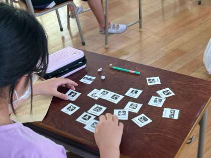 6年生の外国語科の学習です。オリンピック競技を英語で書かれたカードを使ってゲームをしていました。