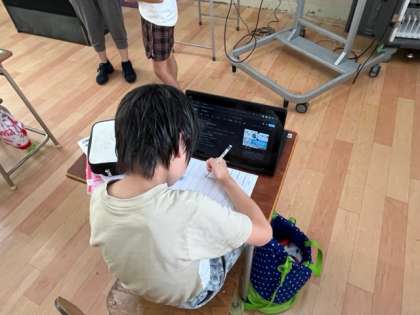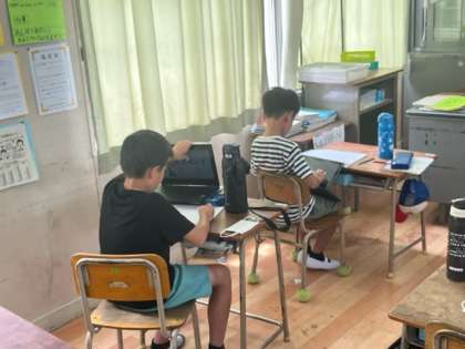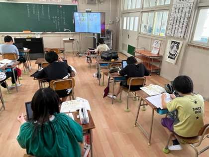4年生は、学習者端末を使ってことわざの意味を調べていました。「虻蜂取らず」「ちりも積もれば山となる」などことわざ辞典のサイトで見つけていました。