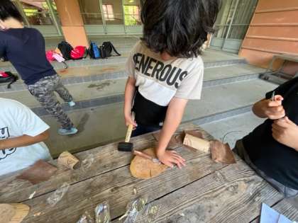 柄の部分ができたらサジの部分をハンマーで打ち込みます。しっかり押さえて打ち込んだら完成です。