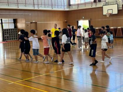 今日は、1学期最後の集会活動です。縦割り班でじゃんけん列車をしました。最後まで勝ち続けた友達に拍手が送られました。