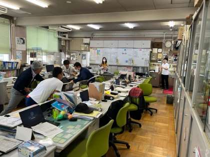 7月19日 放課後に防犯訓練を実施しました。港警察の方に指導を受けながら、さすまたの使い方、避難誘導を訓練しました。