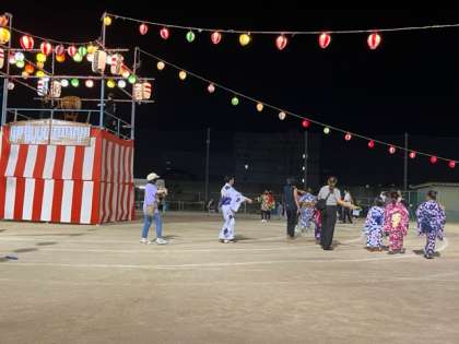 8月18日19日に学校の運動場で盆踊りが開催されました。4年ぶりの開催に地域の皆様、PTAの皆様が運営をしてくださいました。