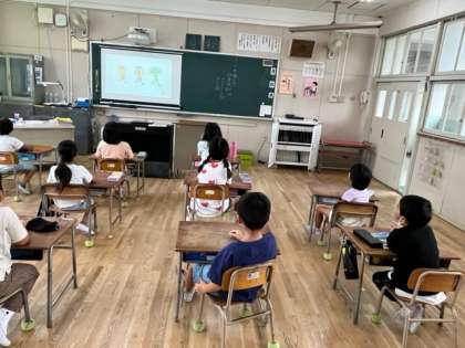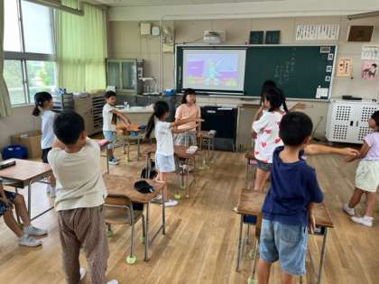 Hello Hello 2年生が楽しく英語の歌を聴いていました。baby sharkの歌ではダンスをしていました。