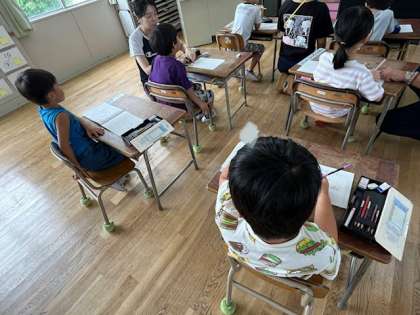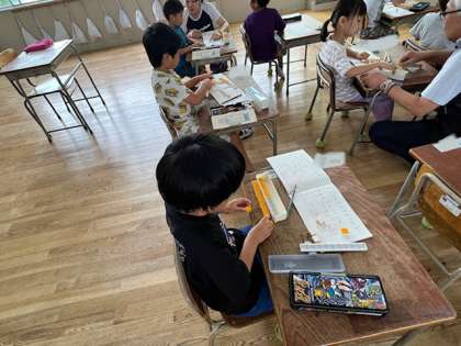 2年生が算数の時間に文章の問題を解いていました。足し算かな?引き算かな?問題を読んで、考えていました。ブラックを使って考える。丸を書いて考える。いろんな解き方を自分で決めていました。