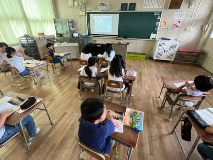 2年生が道徳の時間に長岡の花火の教材で学習していました。2004年の中越地震で被害を受けた方々の復興について考えていました。