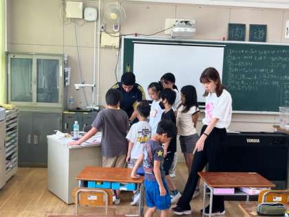 この班では水槽がありました。飾り付けを作り始めるようです。