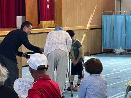 児童代表の児童がみんなの書いた手紙を渡しました。みなさんに喜んでもらえるといいね。