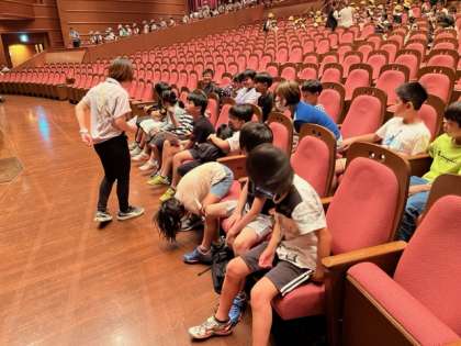 ワクワクしながらエスカレーターを上り、会場につきました。全席大阪市の小学生で埋まります。いよいよ開演です。