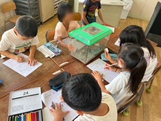 2年生が生活科の時間に飼育している「バッタ」の観察をしていました。みんなで大切に育てているバッタはココちゃんと言うそうです。