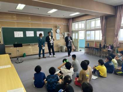 今日は4年生が「漫才ワークショップ」を体験しました。吉本興業のガチャガチャさんと言う芸人さん、作家の先生に来ていただきました。