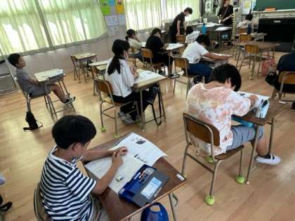 4年生は国語のテストをしていました。真剣に物音ひとつ立てずに問題と向き合っていました。