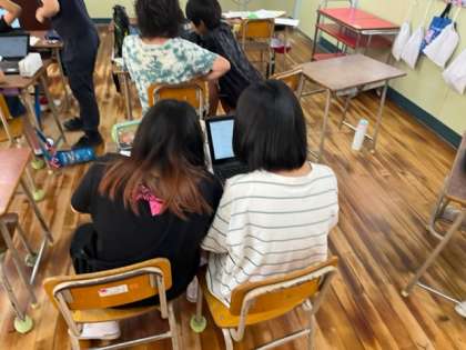 5年生は「和の文化」のスライド作りをしていました。花火や筆など、日本で受け継がれてきたものを調べていました。