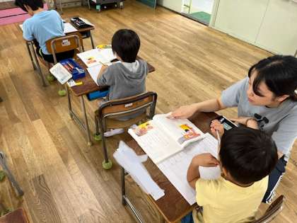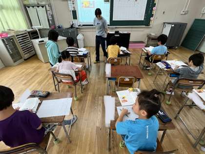 1年生は「サラダでげんき」の物語の中から、動物たちが教えてくれたものを見つけます。しっかり書けているね。