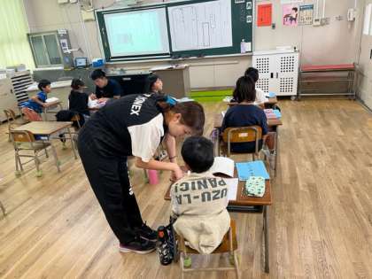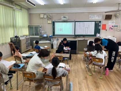 「ビーバーの大工事」は2年生の学習する説明的文章です。今日は第1段落について調べています。
