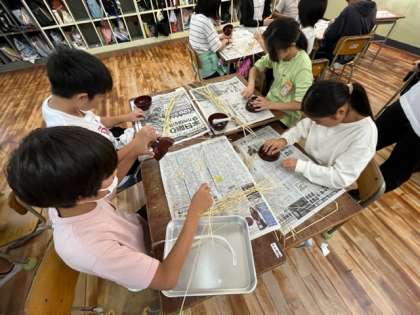 5年生は、育ててきた稲を刈り込み、脱穀、精米をしていました。稲の穂から少しずつお米が取れてきましたね。