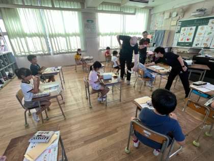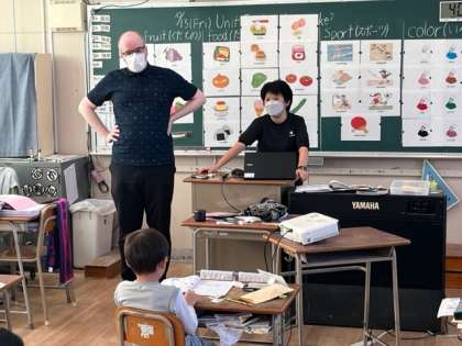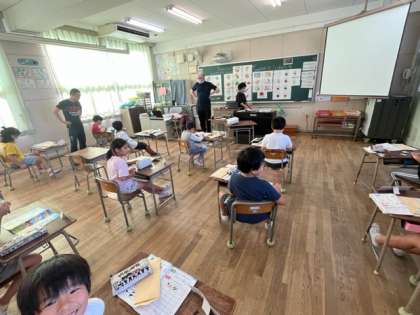 3年生が外国語活動で盛り上がっていました。英語の先生に「What sports do you like?」と聞いて、答えを聞き取ります。