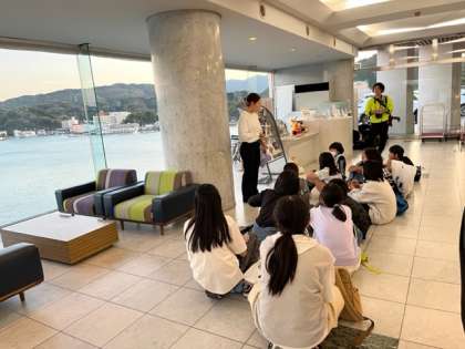 鳥羽グランドホテルの方からは、夜に海にサーチライトを当てるのでご覧くださいと教えていただきました。担任の先生からは、6年生らしい振る舞いを期待しますと伝えられていました。