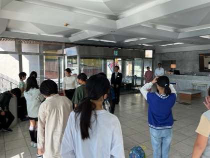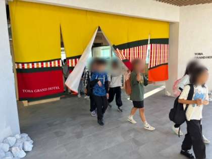 大漁旗でお見送りをしていただき、鳥羽水族館へ向かいます。