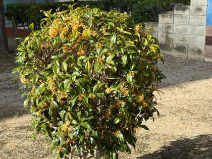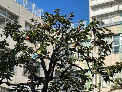 秋が本格的になりました。中庭の金木犀が満開でいい香りです。築山の柿の木には実がたくさんなりました。
