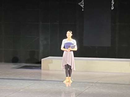 いよいよ谷桃子バレエ団による公演の始まりです。初めは、レッスンや動きの説明です。