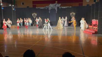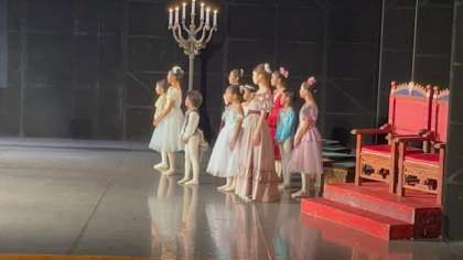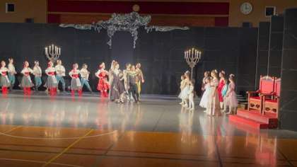 第3幕には、子どもたちが貴族の役で舞台に立ちました。衣装とメイクをしてもらってとても素敵でした。