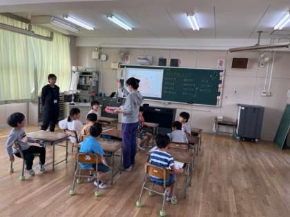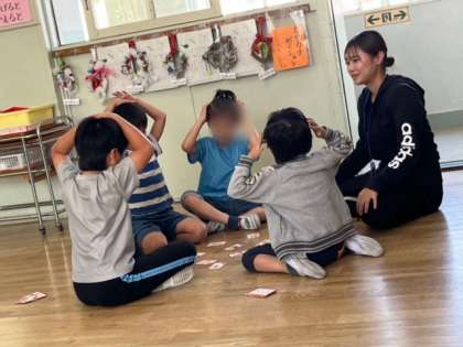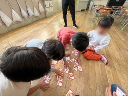 1年生がカルタ取りをしていました。生活科の学習で「昔からあるあそび」をするそうです。
