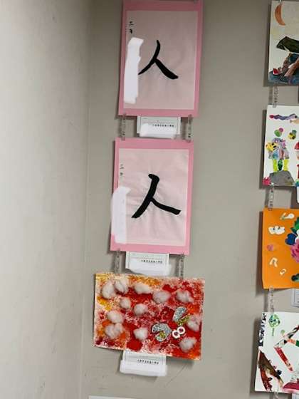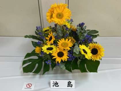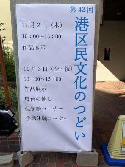港区民センターに子どもたちの作品が展示されています。池島地域の生花も見つけました。芸術の秋ですね。