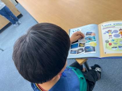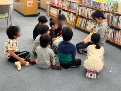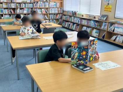1年生は図書室で本を読んでいました。先生の読み聞かせの時には真剣に聞いています。