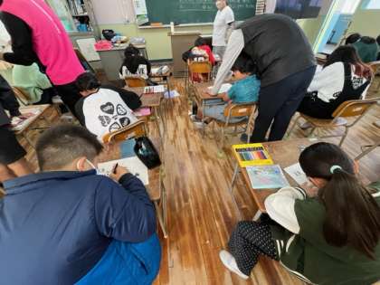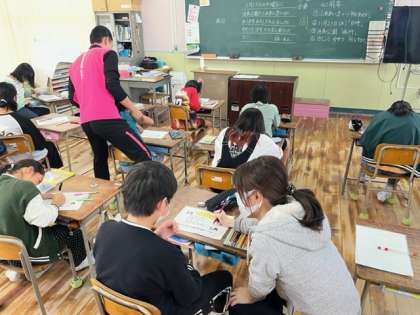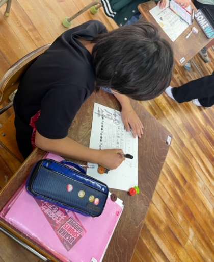 11月23日は「池島ふれあい祭り」です。今日は地域の皆さんに招待状を全員が書いています。多くの皆さんに来ていただきたいです。