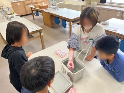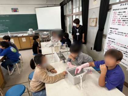 4年生の理科では「ものの温度と体積」 について調べます。今日は、空気を温めるとどうなるのかを調べていました。