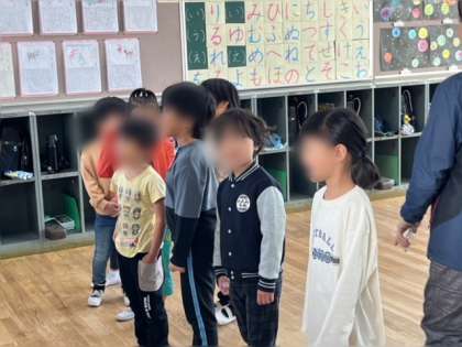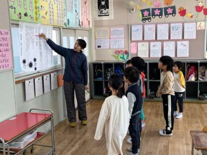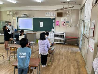 今日から「池島ふれあいまつり」で歌う全校の歌を朝の会の時間に練習します。